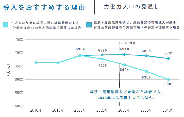 参照:2023 年度版 労働力需給の推計(速報) 労働力需給モデルによるシミュレーション 独立行政法人 労働政策研究・研修機構